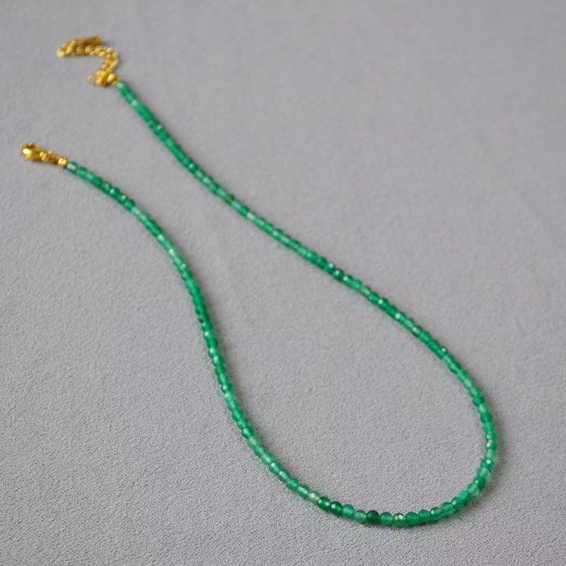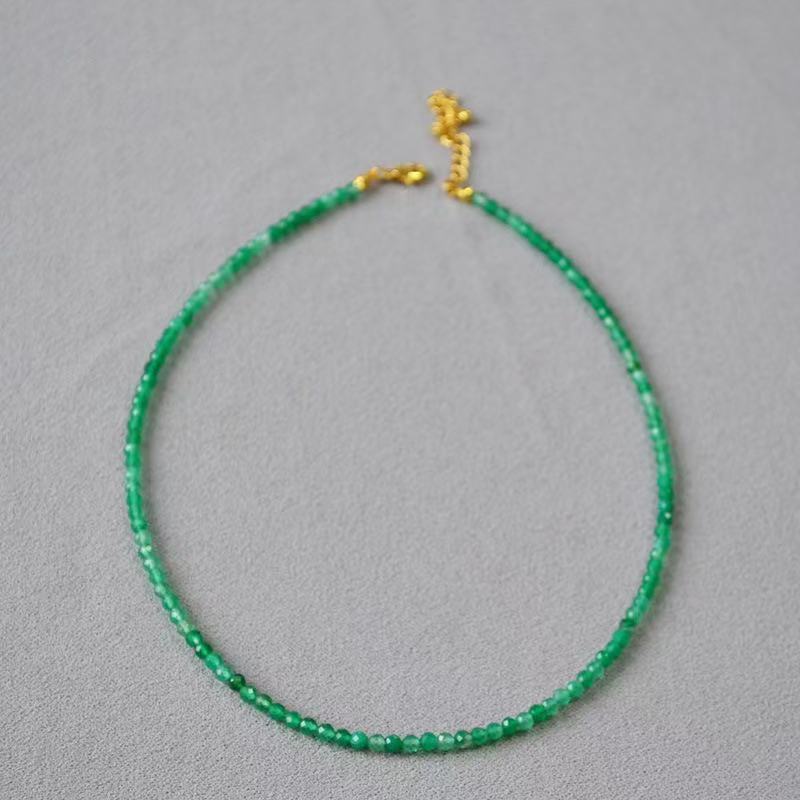 ファッショナブルで新鮮なファセットラウンド天然グリーンアゲートネックレス