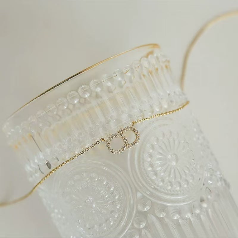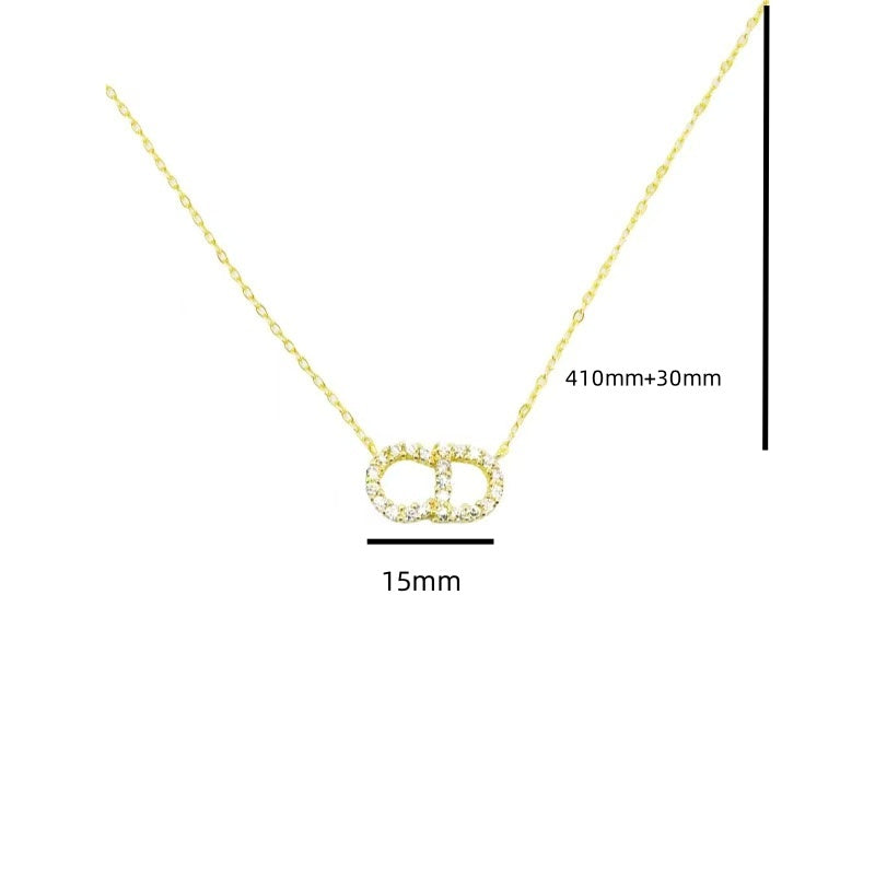 925シルバーゴールドメッキ14Kレターダイヤモンドネックレス